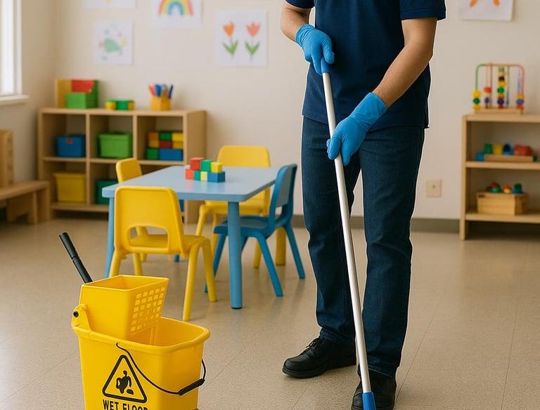 Professional daycare cleaning, creating a hygienic, safe, and inviting space for children and staff.